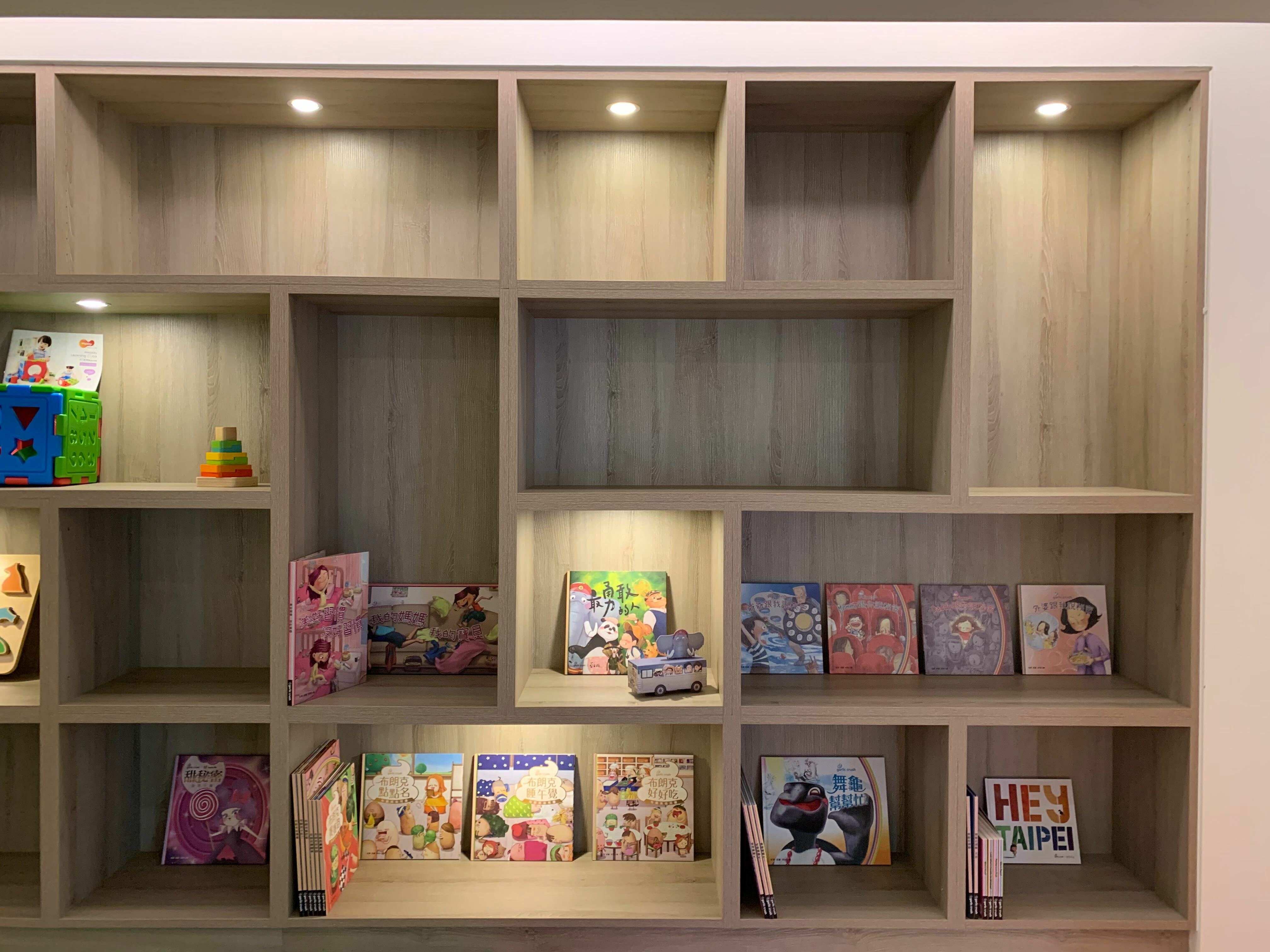 我們可提供設計與顧問服務、佈置牆面與環境、規劃現場要置放的童書與玩具等。